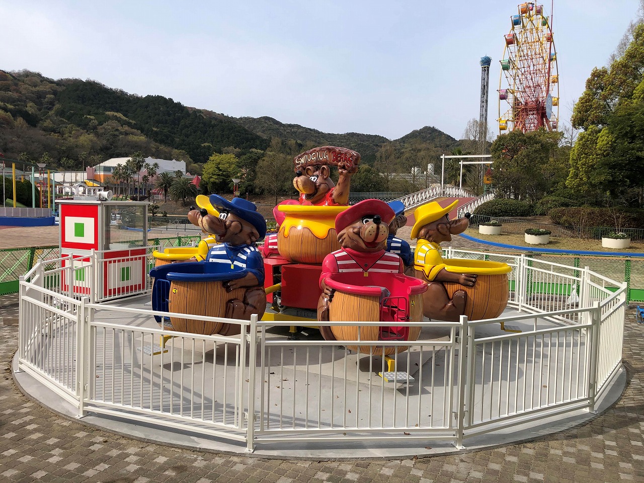 4月25日、NEWレオマワールド様にファミリー向けライドのスインギングベアがオープンしました。